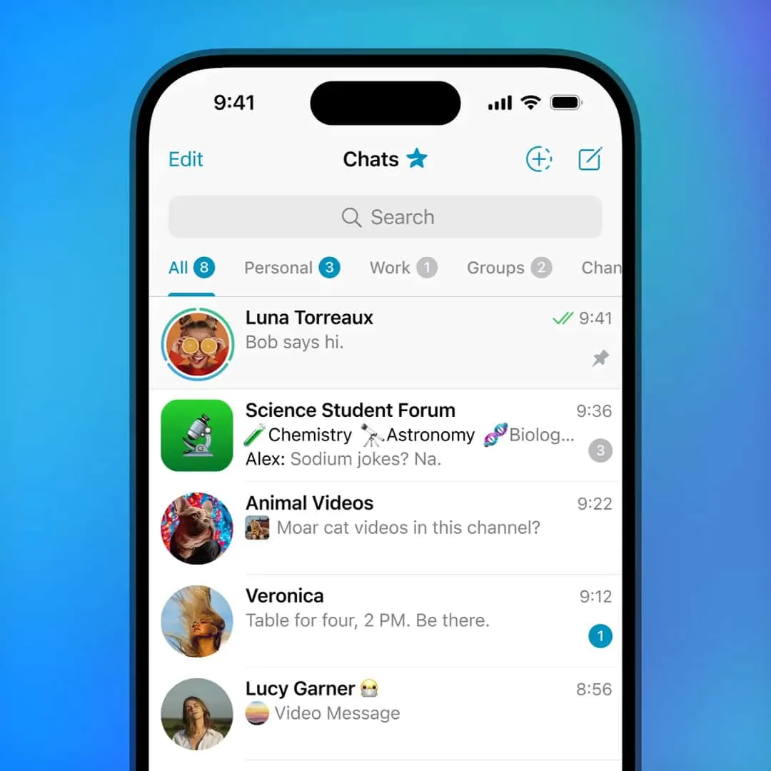 群组中的话题采用了新的标签布局,可以从聊天列表中更快地访问,并且可以一键在对话之间跳转。